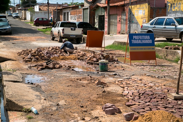 Com recursos próprios, Prefeitura de Timon executa manutenção de calçamento em vários bairros